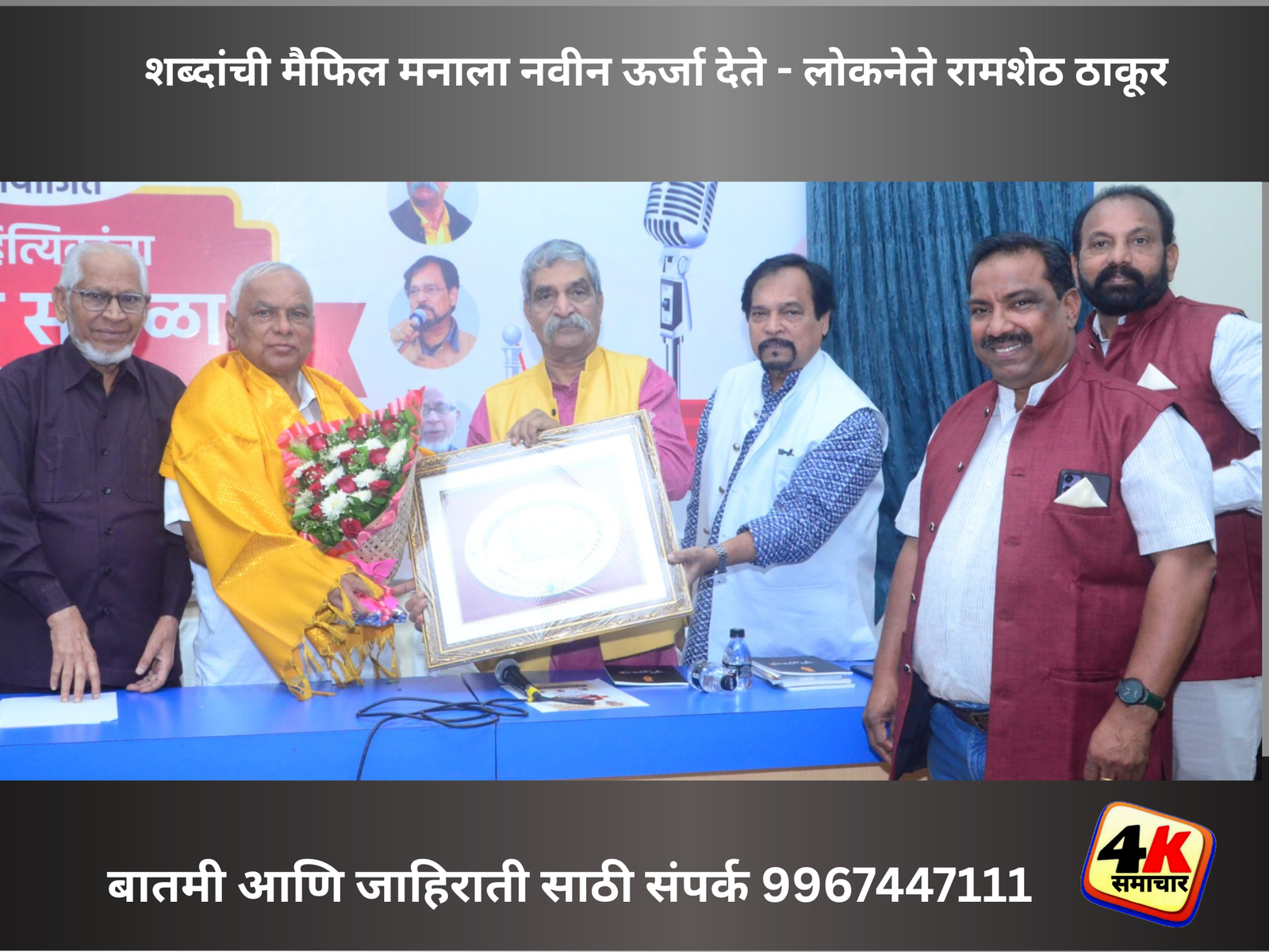 पनवेल (प्रतिनिधी) हृदयातील भावना म्हणजे साहित्य,कवी-साहित्यिक लिहितात ते खऱ्या अर्थाने हृदयाला भिडत. आयुष्याच्या धकाधकीत मनाला समाधान वाटत असेल तर साहित्यिक कार्यक्रमाला जावे,कवी संमेलनातील शब्दांची मैफिल ही मनाला नवीन ऊर्जा देते असे उद्गार माजी खासदार लोकनेते रामशेठ ठाकूर यांनी पनवेल येथे काढले.श्री.रामशेठ ठाकूर सामाजिक विकास मंडळ आणि कोकण मराठी साहित्य परिषद नवीन पनवेल पनवेल शाखा यांच्या संयुक्त विद्यमाने आयोजित करण्यात आलेल्या साहित्यिकांचा गौरव सोहळा आणि कवी संमेलन समारंभ प्रसंगी लोकनेते रामशेठ ठाकूर बोलत होते. या सोहळ्यास सुप्रसिद्ध कवी अशोक नायगावकर, अरुण म्हात्रे, ज्येष्ठ गझलकार ए.के.शेख,भाजपचे ज्येष्ठ नेते वाय.टी.देशमुख, माजी उपमहापौर व जिल्हा सरचिटणीस चारुशीला घरत, कोकण मराठी साहित्य परिषद नवीन पनवेल शाखेचे अध्यक्ष गणेश कोळी,पनवेल शाखेचे अध्यक्ष सुभाष कुडके उपस्थित होते.