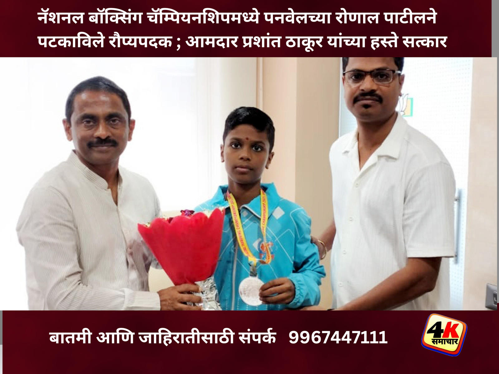 रोणाल हा युनाइटेड शोटोकान कराटे असोसिएशन इंडिया (निलेश फाईटर ) या अकॅडेमीमध्ये प्रशिक्षक योगेश बैकर यांच्याकडून बॉक्सिंगचे धडे घेत आहे. अमृतसर येथे झालेल्या या स्पर्धेत देशभरातील अनेक राज्यांमधून उत्कृष्ट खेळाडूंनी सहभाग नोंदवला होता. ३० किलो वजनावरील गटात झालेल्या या स्पर्धेत तीव्र स्पर्धा आणि कडव्या सामन्यांमध्ये रोणालने दाखवलेली जिद्द, कौशल्य आणि अचूक तंत्र यामुळे त्याने रौप्यपदकाची कमाई करत पनवेल तालुक्याचा मान उंचावला.रोणालची मेहनत, चिकाटी आणि क्रीडाप्रती असलेली निष्ठा प्रेरणादायी आहे. राष्ट्रीय पातळीवर मिळवलेले यश पनवेलसाठी अभिमानाची बाब ठरली आहे. या कामगिरीबद्दल आमदार प्रशांत ठाकूर यांनी रोणालच्या कामगिरीचे कौतुक करून त्याला पुढील स्पर्धांसाठी शुभेच्छा दिल्या.