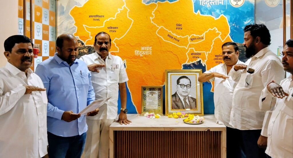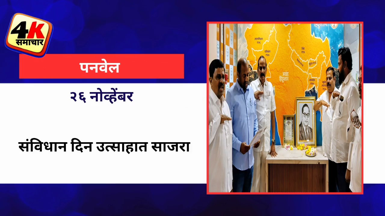 पनवेल दि. २६ (प्रतिनिधी) – भारताच्या संविधान स्वीकृती दिनानिमित्त पनवेल तालुका व शहर भाजपच्या मध्यवर्ती कार्यालयात संविधान दिन उत्साहात साजरा करण्यात आला.