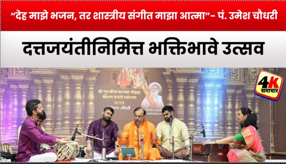 पनवेल (प्रतिनिधी) दत्तजयंतीनिमित्त आयोजित भक्तिमय कार्यक्रमात प्रसिद्ध संगीतकार व गायक पं. उमेश चौधरी यांनी आपल्या सुमधूर गायनाने उपस्थितांचे मन मोहून टाकले. या प्रसंगी बोलताना त्यांनी, “देह माझे भजन, तर शास्त्रीय संगीत माझा आत्मा” असे मनोवेधक प्रतिपादन केले.