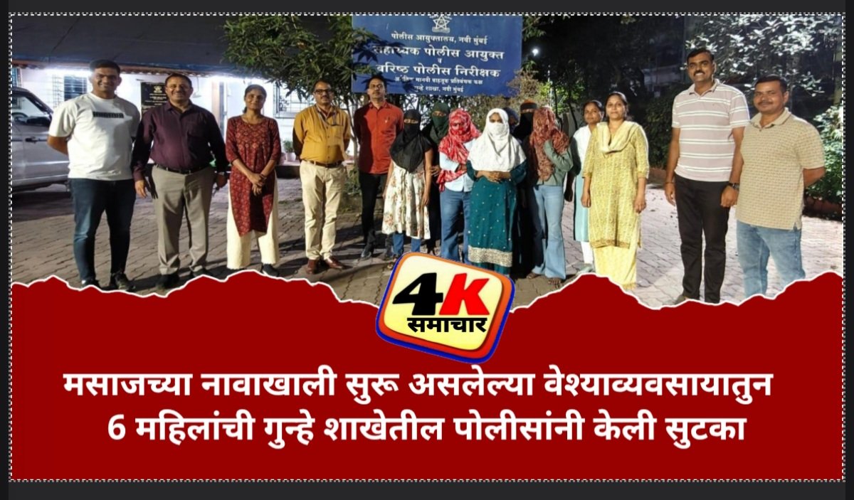 पनवेल, दि.3 (संजय कदम) ः मसाजच्या नावाखाली सुरू असलेल्या वेश्याव्यवसायातून 6 महिलांची गुन्हे शाखा पोलिसांनी सुटका केली आहे.