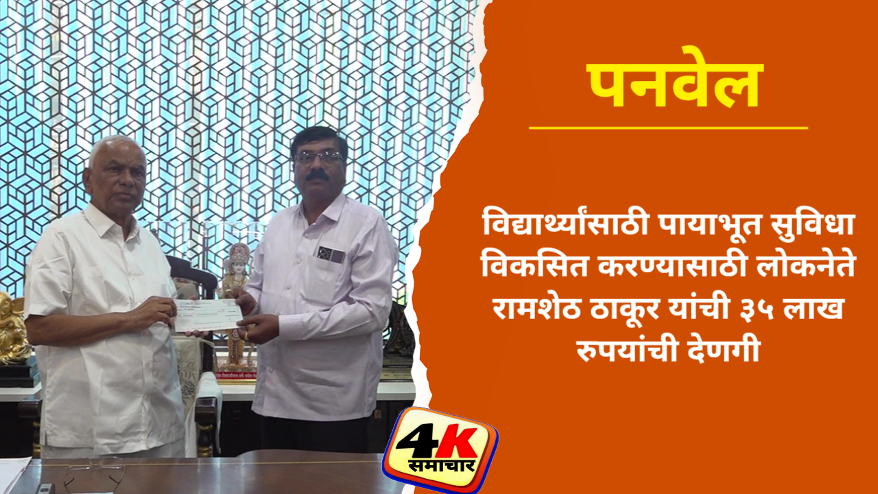 ही देणगी ठाकूर इन्फ्रा प्रोजेक्ट्स यांच्या सीएसआर फंडातून करण्यात आली असून, बुधवारी लोकनेते रामशेठ ठाकूर यांच्या हस्ते धनादेश विद्यार्थ्यांच्या हितासाठी संस्थांना दिला गेला. यावेळी पुंजाजी रामजी भोर विद्यालयाचे मुख्याध्यापक काशिनाथ लक्ष्मण तळपाडे आणि डॉ. अण्णासाहेब शिंदे कनिष्ठ महाविद्यालयाचे मुख्याध्यापक राजेंद्र चंद्रभान काकड उपस्थित होते.लोकनेते रामशेठ ठाकूर यांच्या या उदार योगदानामुळे ग्रामीण भागातील विद्यार्थी आधुनिक आणि सुसज्ज इमारतींमध्ये गुणवत्तापूर्ण शिक्षण घेऊ शकणार आहेत, जे त्यांच्या उज्ज्वल भविष्यासाठी मोलाची पायाभूत सुविधा ठरेल.