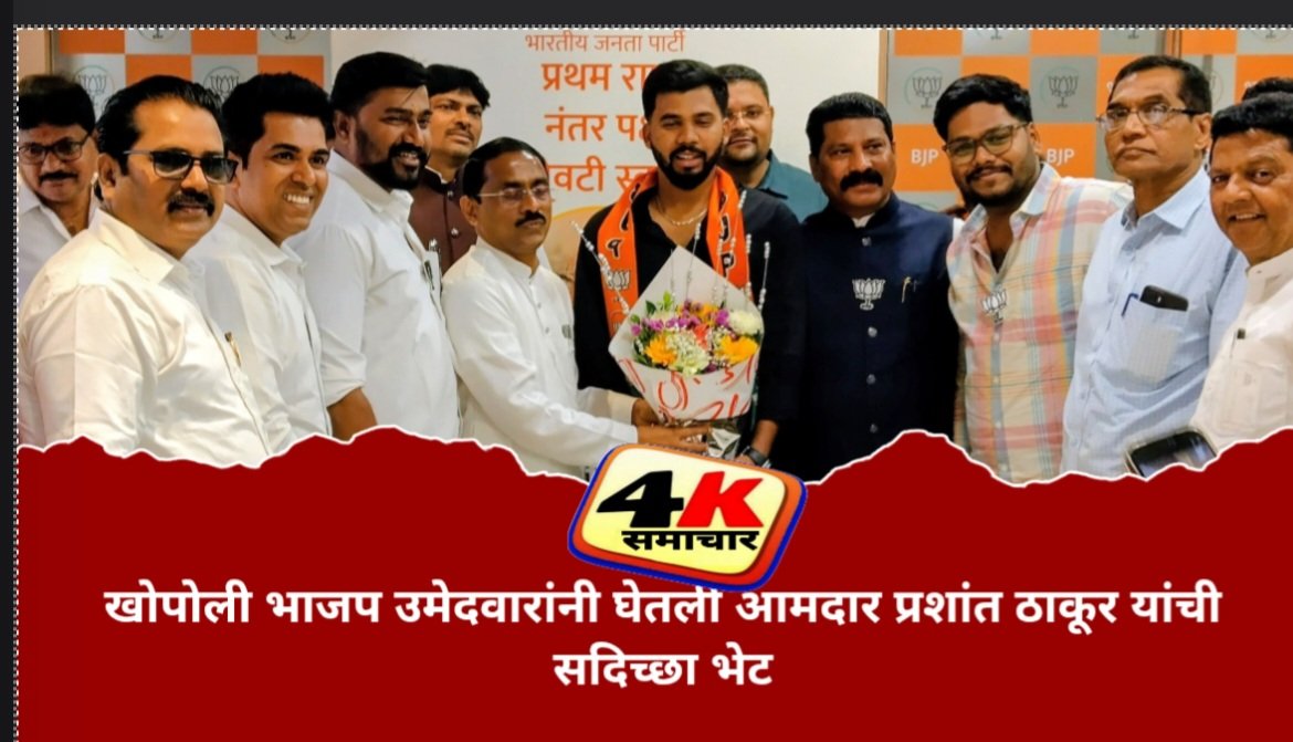 प्रतिनिधी(प्रतिनिधी) खोपोली नगर परिषद सार्वत्रिक निवडणूक २०२५ च्या माध्यमातून भारतीय जनता महायुतीच्या सर्व उमेदवारांनी भाजप निवडणूक निरीक्षक अँड.प्रकाश बिनेदार यांच्या माध्यमातून निवडणुकी अंती पक्ष संघटना सक्षम व मजबूत करण्याचा निर्धार करीत आमदार प्रशांत ठाकूर व उत्तर रायगड जिल्हाध्यक्ष अविनाश कोळी यांची मार्गदर्शन रुपी सदिच्छा भेट घेतली.