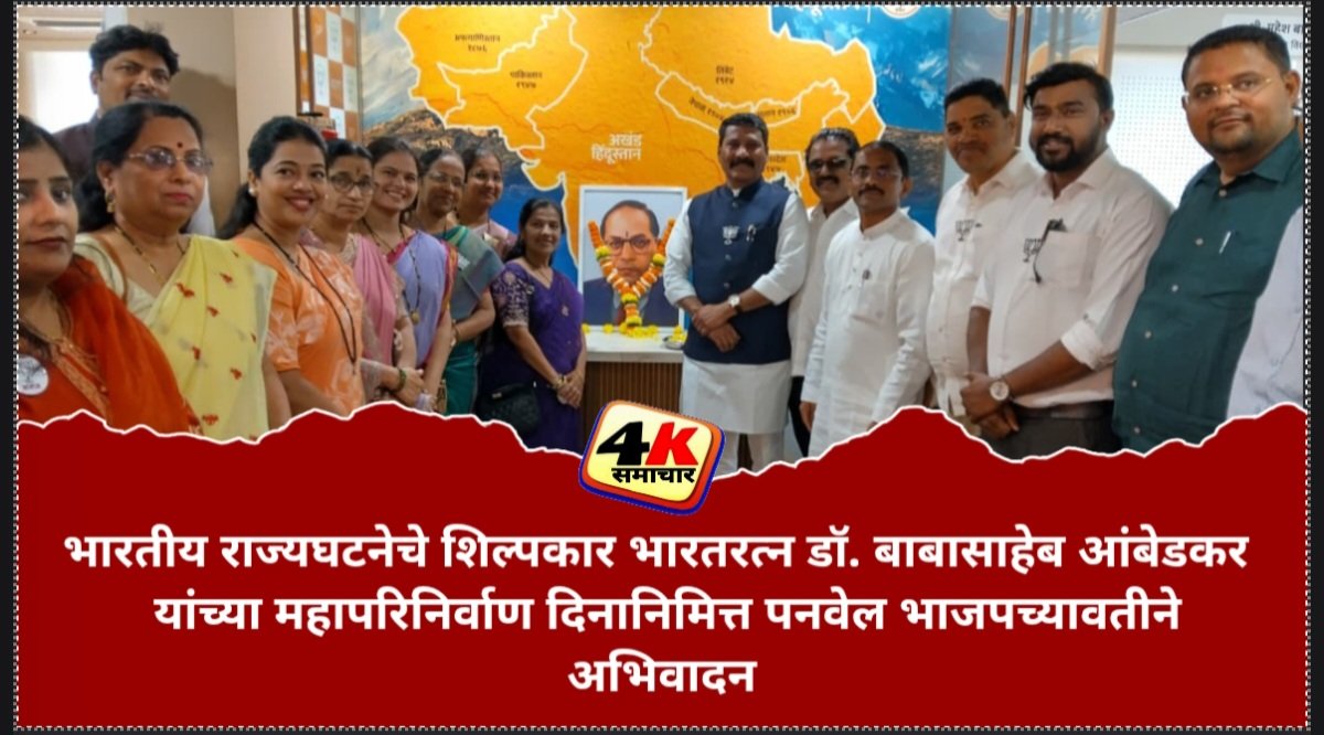 भारतीय राज्यघटनेचे शिल्पकार भारतरत्न डॉ. बाबासाहेब आंबेडकर यांच्या महापरिनिर्वाण दिनानिमित्त पनवेल भाजपच्यावतीने अभिवादन करण्यात आले.