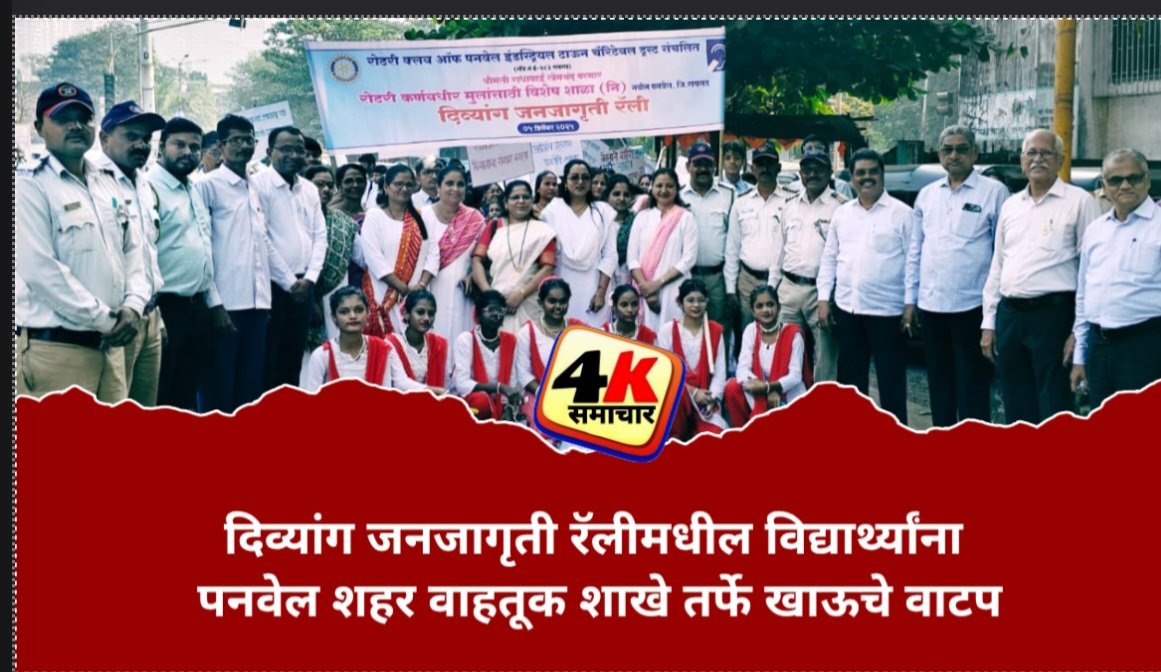 पनवेल दि.०५(वार्ताहर): दिव्यांग जनजागृती रॅलीमधील विद्यार्थ्यांना पनवेल शहर वाहतूक शाखे तर्फे खाऊचे वाटप करण्यात आले.