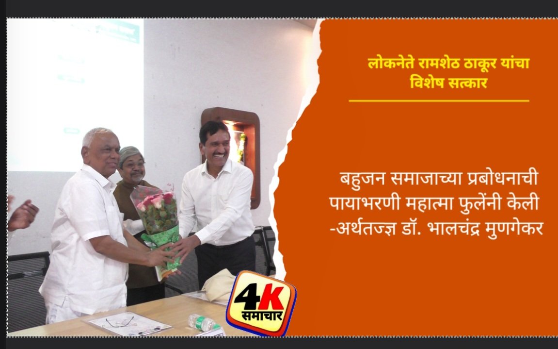 पनवेल (प्रतिनिधी) महात्मा ज्योतिराव फुले यांना भारतातील आद्य समाजसुधारक आणि क्रांतिकारी म्हणून गौरविले गेले. बहुजन समाजाच्या प्रबोधनाची पायाभरणी महात्मा फुलेंनीच केली, असे प्रतिपादन ज्येष्ठ अर्थतज्ज्ञ डॉ. भालचंद्र मुणगेकर यांनी सातारा येथे कै. मातोश्री भागुबाई चांगू ठाकूर स्मृती व्याख्यानमालेच्या उद्घाटनावेळी केले. या कार्यक्रमात मराठी अर्थशास्त्र परिषदेच्या वतीने थोर देणगीदार माजी खासदार लोकनेते रामशेठ ठाकूर यांचा विशेष सत्कार करण्यात आला.